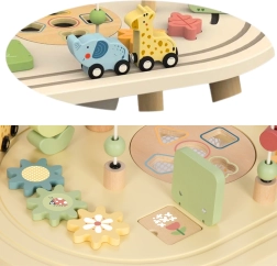 Descubre con tu hijo el mundo de actividades con nuestra mesa Safari. Ideal para niños a partir de 1 año, esta mesa combina una variedad de elementos educativos como encajes de formas, circuitos de deslizamiento y más actividades.