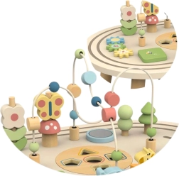 - - Estimulación sensorial: La textura de la madera y los elementos interactivos aportan estímulos sensoriales que favorecen el desarrollo de los sentidos.