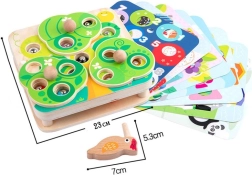 El inteligente juego magnético de madera de Tooky Toy combina diversión y aprendizaje en uno. Con la ayuda de un pajarito de madera, los niños atrapan gusanitos magnéticos, giran las hojas del árbol y cumplen tareas en tablas intercambiables. El juego desarrolla la motricidad fina, la coordinación ojo-mano, el reconocimiento de colores, formas y números, y además ofrece un acabado seguro en madera con bordes suaves.