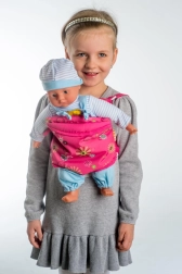 Este portamuñecas infantil es ideal para todos los pequeños amantes de las muñecas. Su confección en tela es ligera, agradable al tacto y fácil de mantener. El canguro ayuda a desarrollar la empatía, la imaginación y el juego de roles en el día a día.