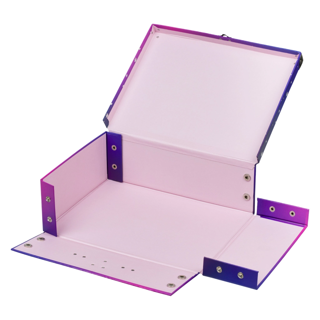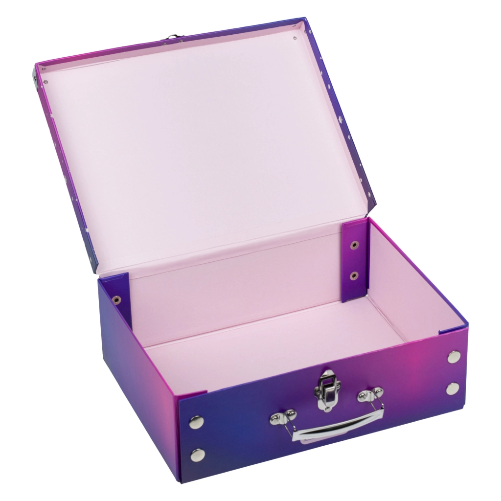 Práctico maletín plegable, ideal para educación artística, juguetes o pequeños objetos. Plegado sencillo gracias a los corchetes y herrajes.