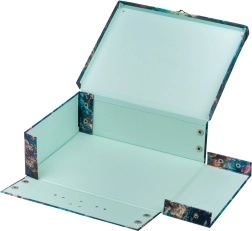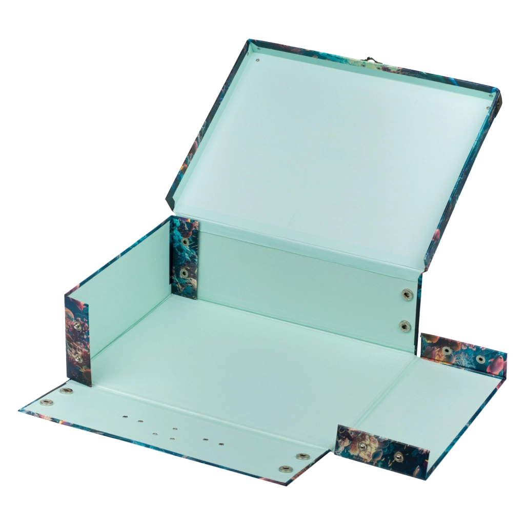 El práctico maletín escolar plegable Delfín es el compañero ideal para educación artística, juguetes o pequeños objetos. Gracias a su ingenioso sistema de broches, el maletín con esquinas reforzadas de metal se puede plegar y desplegar fácilmente en cuestión de segundos, lo que garantiza un transporte fácil y cómodo.