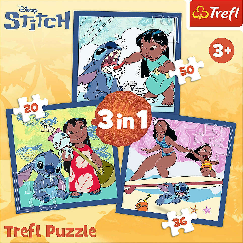 Descubre los divertidos rompecabezas 3 en 1 con los queridos personajes de LILO & STITCH. Cada uno de los tres puzles tiene un número distinto de piezas, por lo que el niño puede elegir la dificultad según su estado de ánimo y edad. Al completarlos, se obtienen tres imágenes coloridas, de las cuales la más grande mide 200 × 195 mm.