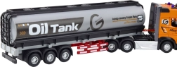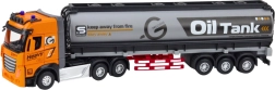 La cisterna está equipada con puertas de cabina que se abren, efectos de luz y sonido activados por el control remoto y adhesivos de advertencia que aportan la sensación de un vehículo real para el transporte de combustibles. Su color naranja y negro, líneas dinámicas y detalles ejecutados con precisión atraen la atención y dan al vehículo un carácter profesional.