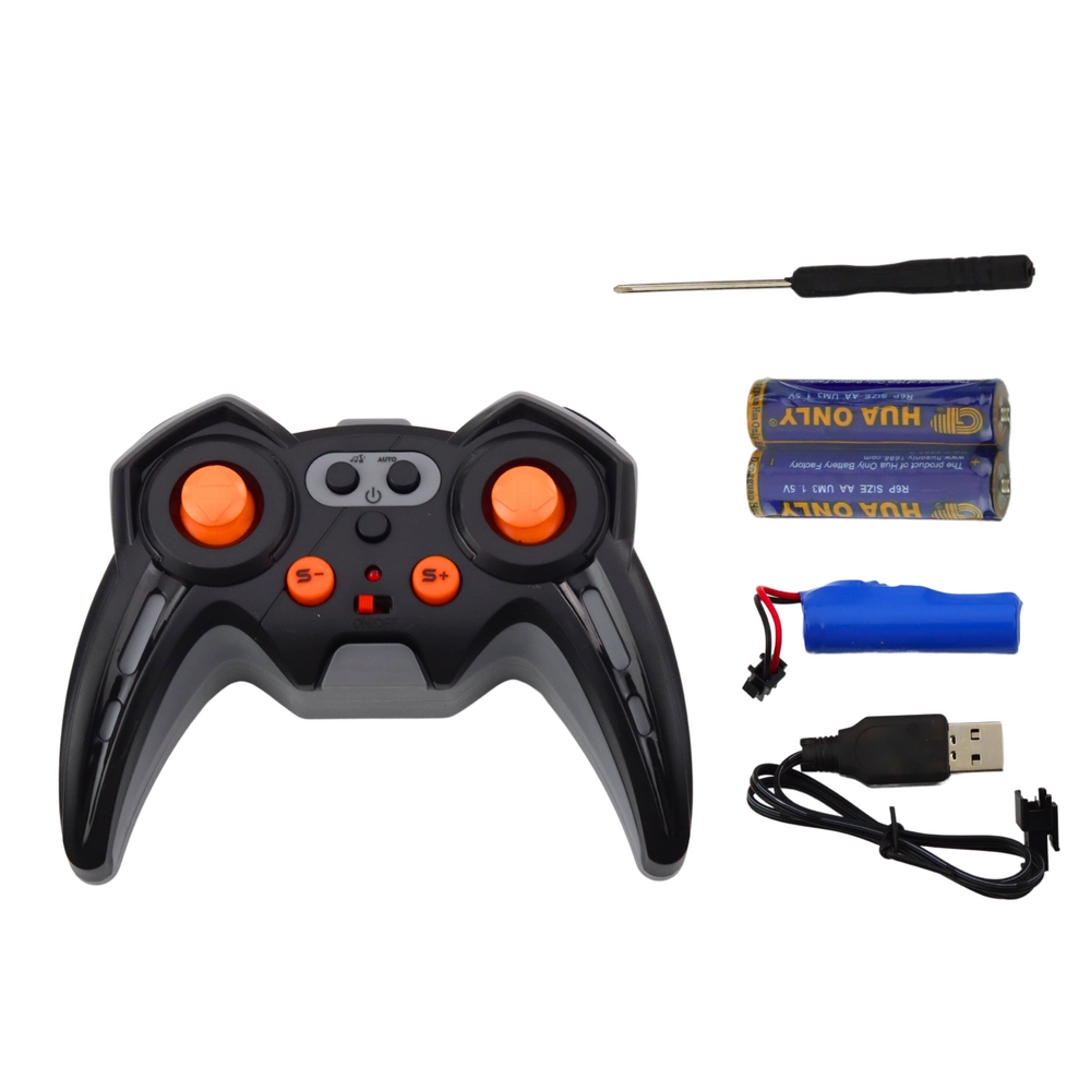 El control se realiza mediante un cómodo mando a distancia de 2.4GHz, que proporciona un control fluido del movimiento hacia adelante, hacia atrás, a la derecha y a la izquierda, y además permite activar el modo demo, las luces y los sonidos. La disposición intuitiva de los botones permite al niño manejar el vehículo de forma independiente y aprender los conceptos básicos de orientación espacial.