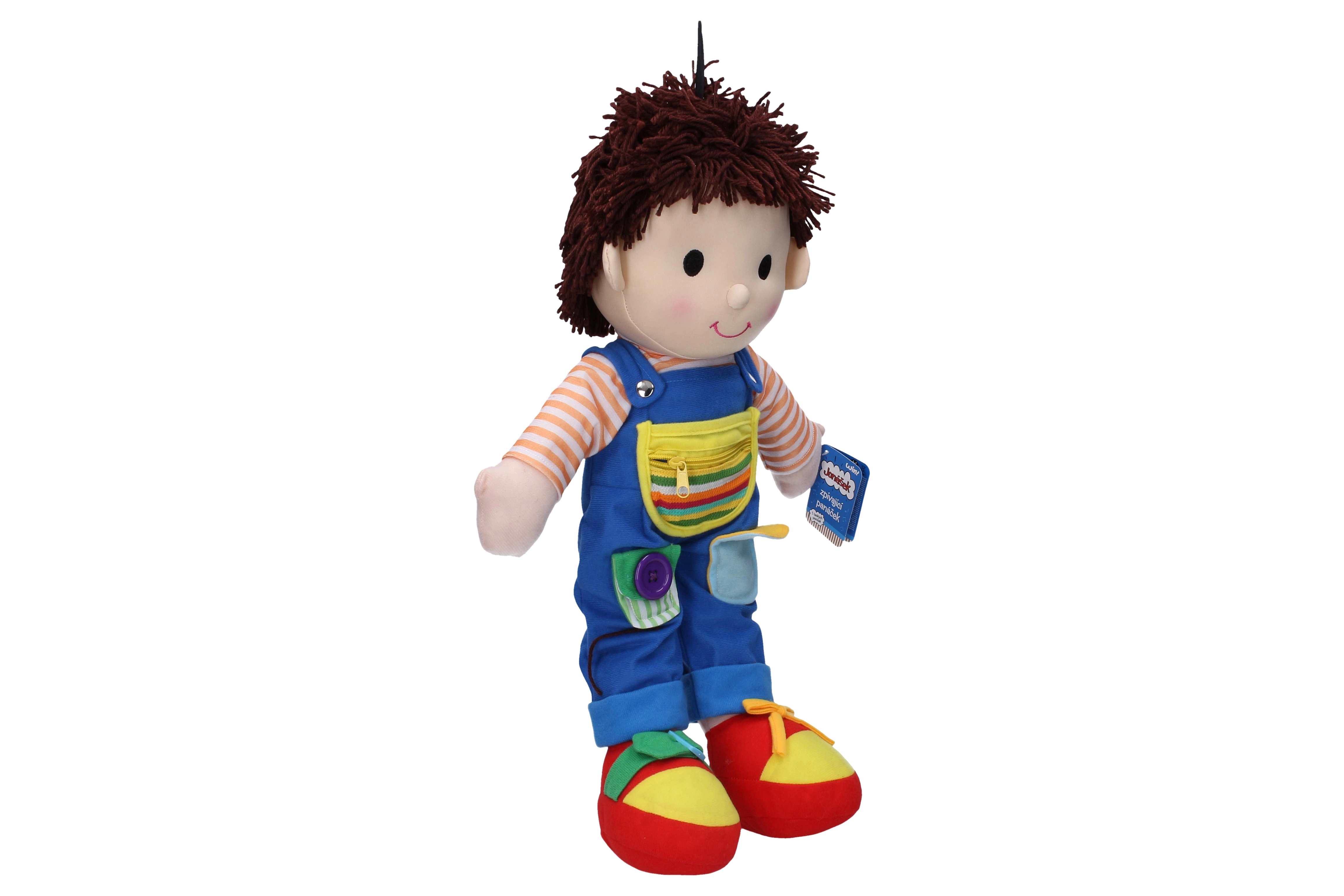 El muñeco de trapo Jonášek es ideal para los niños que aman la música y el canto. Aporta alegría y diversión gracias a cinco canciones tradicionales checas que los niños pueden disfrutar con solo presionar un botón.