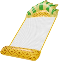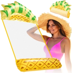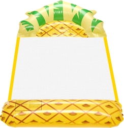 Disfruta del verano con nuestra elegante colchoneta inflable con forma de piña, diseñada para usar en la playa o en la piscina. Esta embarcación multifuncional combina las funciones de hamaca, tumbona y sillón para ofrecer la máxima comodidad. La colchoneta está disponible en color blanco con matices de amarillo y verde, lo que aporta un refrescante aspecto veraniego.