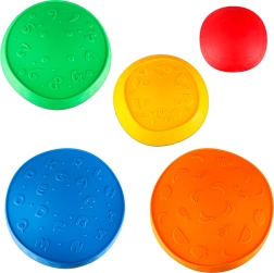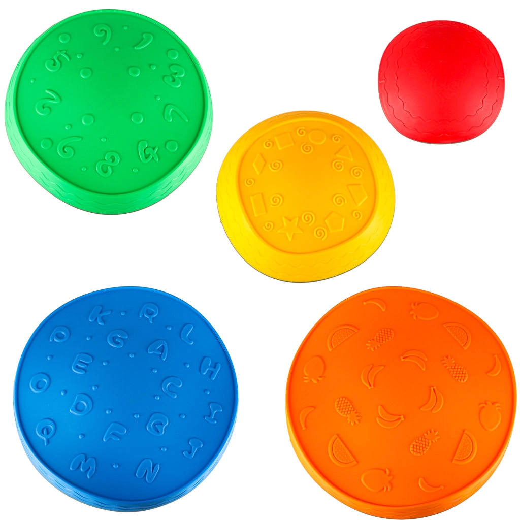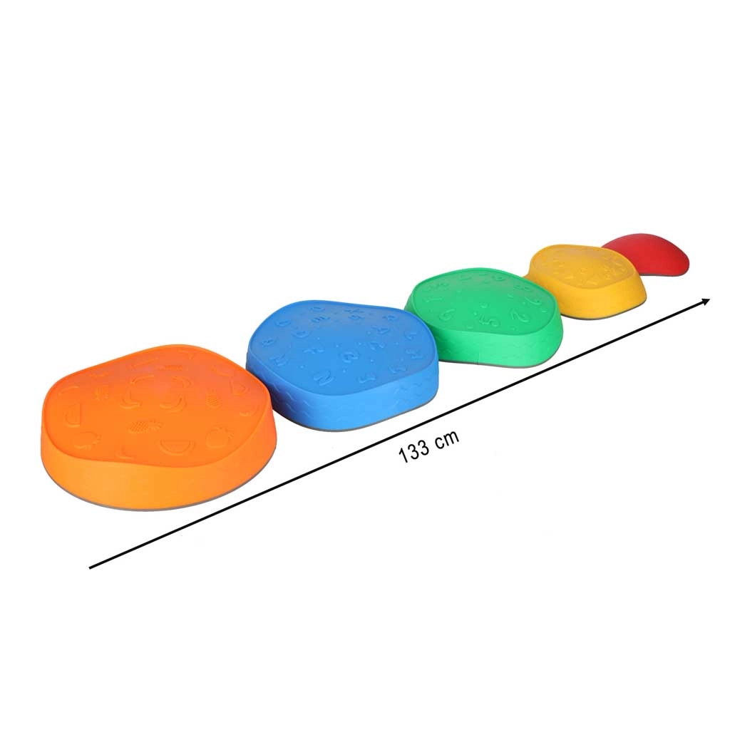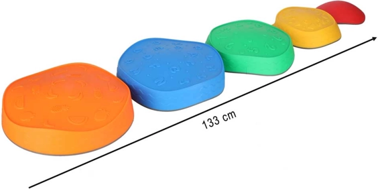 Gracias a su estructura firme y a las bases antideslizantes, las piedras permanecen estables en distintos tipos de suelo. El poliuretano resistente es agradable al tacto y fácil de limpiar. Los motivos de colores (números, letras, formas, frutas, patrones) respaldan el aprendizaje mediante el juego y el desarrollo de la motricidad fina y gruesa.