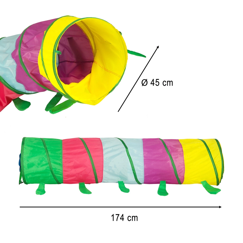 Este adorable túnel para niños es un gran complemento para los juegos infantiles, la integración y el desarrollo sensomotor. Los niños a partir de 3 años pueden participar de forma lúdica bajo la supervisión de adultos. El circuito de obstáculos de juguete ayuda al desarrollo de las habilidades motoras y la coordinación.