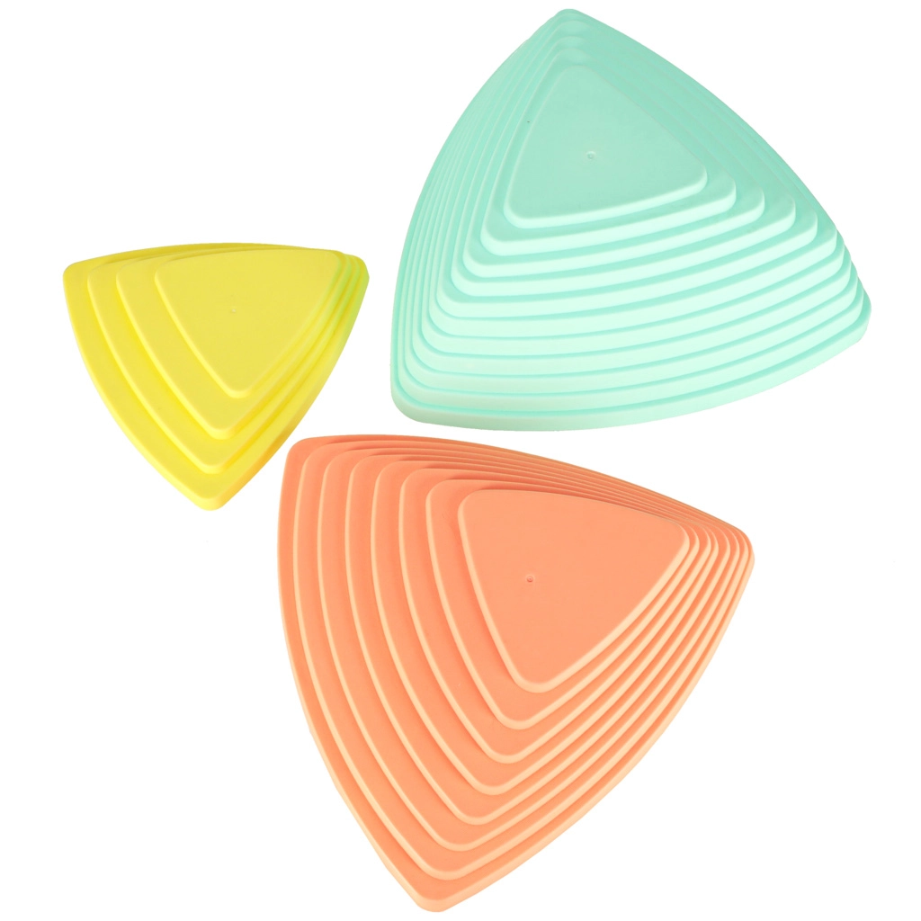 Incluyen todo lo necesario para crear un circuito sensorial dinámico y colorido. Los niños pueden decidir por sí mismos cómo será su recorrido, lo que refuerza la sensación de control y fomenta el descubrimiento. El juego con estas piedras puede adoptar distintas formas, desde un simple circuito de obstáculos hasta el emocionante juego de “el suelo es lava”.