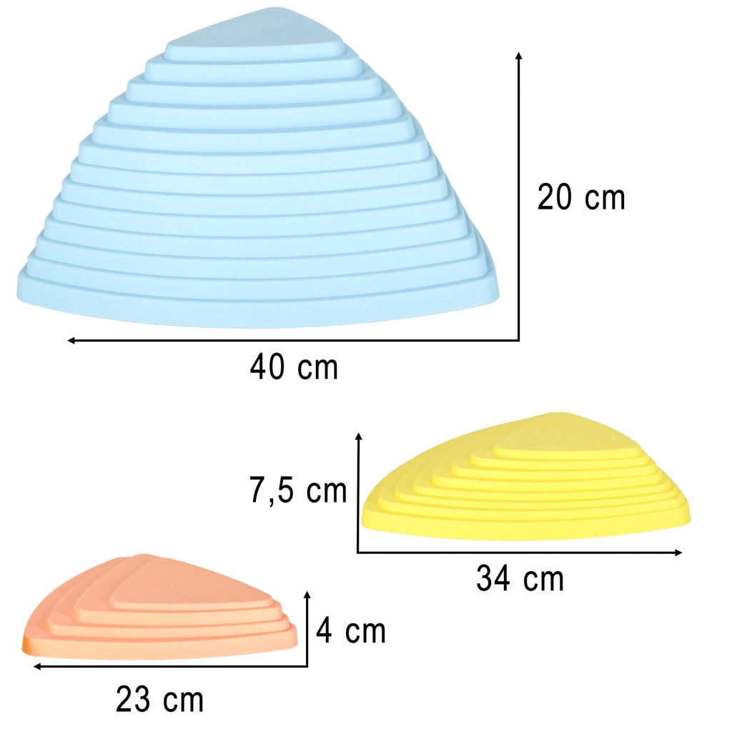 Las piedras de equilibrio ofrecen un espacio de juego seguro y flexible, tanto en casa como en guarderías o salas terapéuticas. En línea con el método Montessori, estas piedras geométricas de distintas alturas enseñan a los niños a planificar movimientos, mantener el equilibrio y concentrarse.