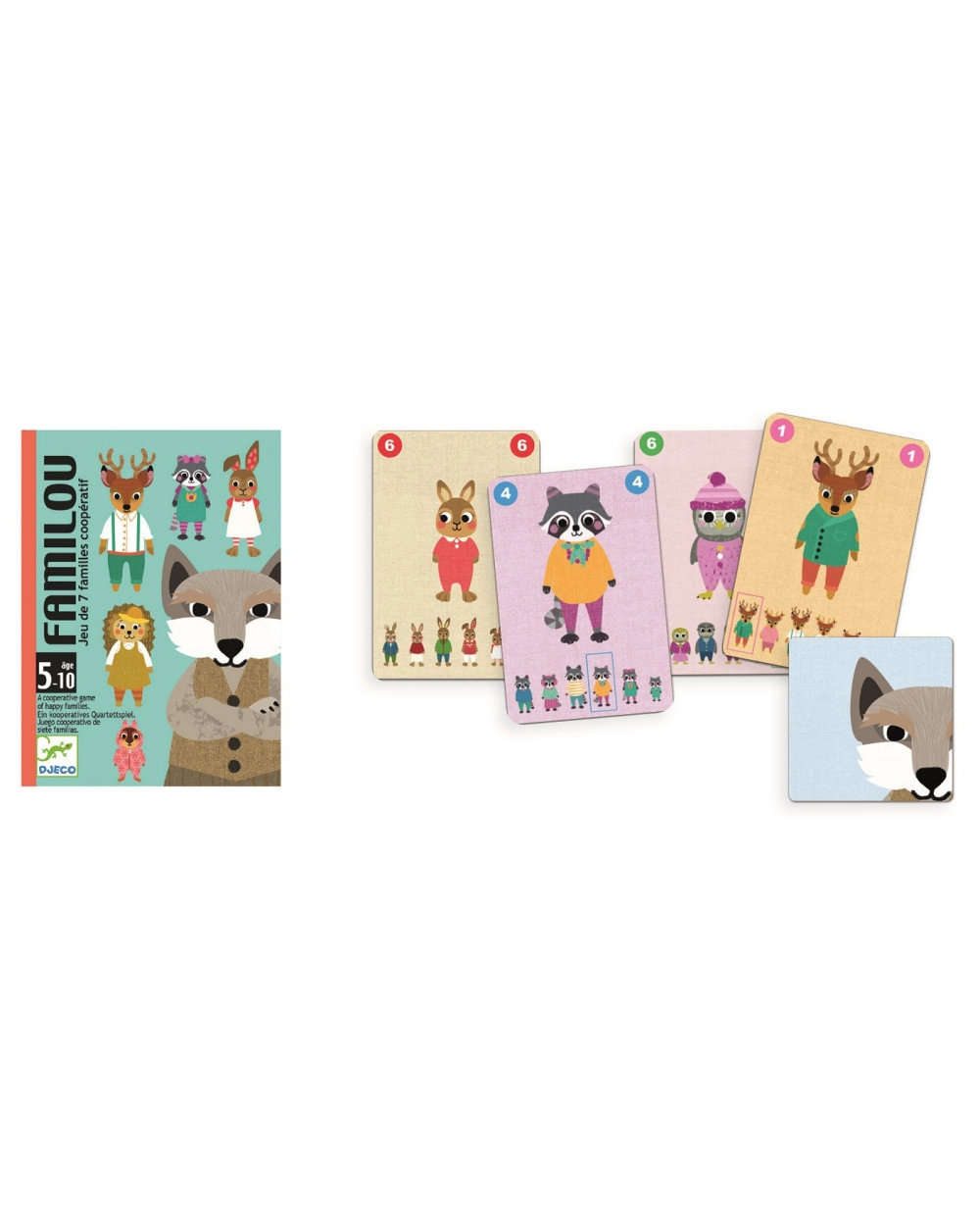 Disfruta de momentos inolvidables con el juego de cartas Familou de la reconocida marca Djeco. Este juego está diseñado para fomentar la cooperación entre los jugadores, ya que el objetivo es encontrar y reunir a todas las familias de animales antes de que aparezcan los lobos. Con reglas sencillas y cartas bellamente ilustradas, niños y adultos se sumergen rápidamente en la partida.