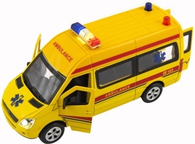 Esta ambulancia detalladamente elaborada combina un resistente chasis metálico con accesorios de plástico duraderos y es ideal para el juego creativo. Gracias al mecanismo de retroceso se desplaza sin necesidad de control remoto, mientras que las puertas delanteras y traseras abatibles aumentan la autenticidad y la interactividad.