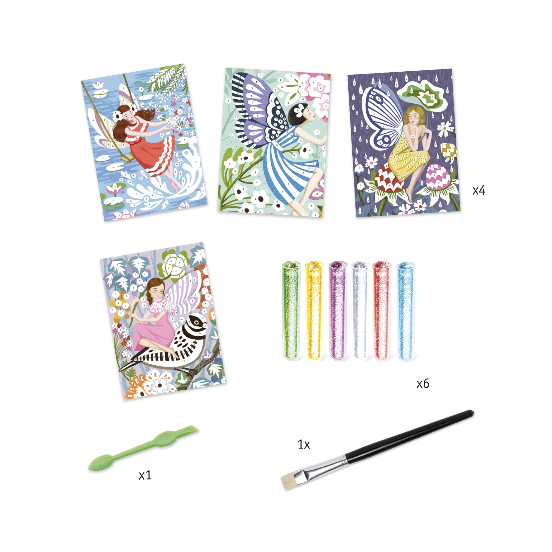 El set Djeco Arenado brillante Hadas Mágicas es ideal para niños a quienes les gusta crear y aman el mundo de la fantasía. Gracias a los arenas de colores y purpurina, los niños pueden crear obras de arte únicas. Cada hada está representada con detalle y ofrece la posibilidad de decorarla según su propia imaginación.