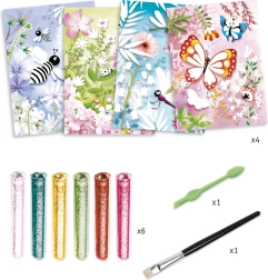 DJECO Mariposas brillantes de arena es un set creativo que permite a los niños crear mariposas hermosas y luminosas mediante el uso de arena.