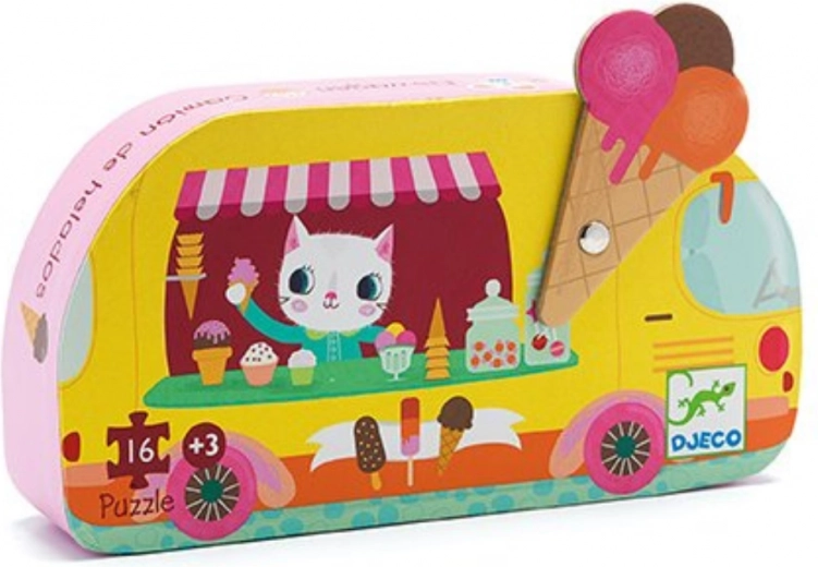 Descubre el rompecabezas infantil DJECO Helado en marcha, ideal para pequeños amantes de la diversión y el aprendizaje. Este rompecabezas de 16 piezas ofrece: