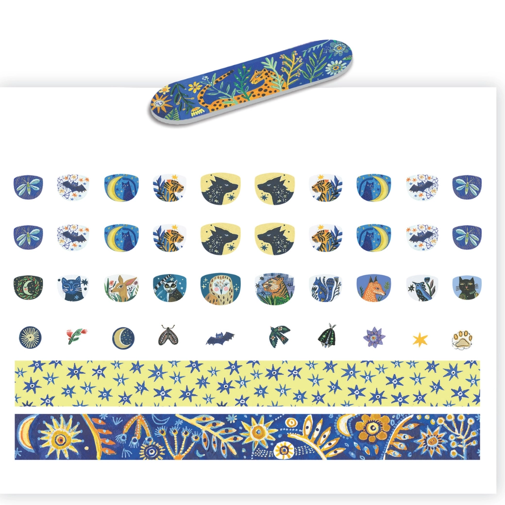 Crea diseños de uñas sorprendentes con las exclusivas pegatinas para uñas Luz de luna de DJECO. Estas pegatinas ofrecen una aplicación sencilla y permiten a los peques expresar su creatividad.