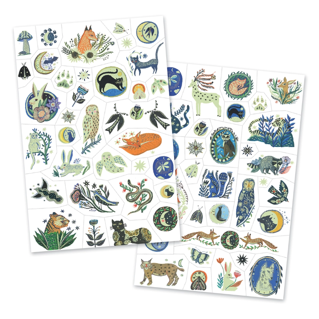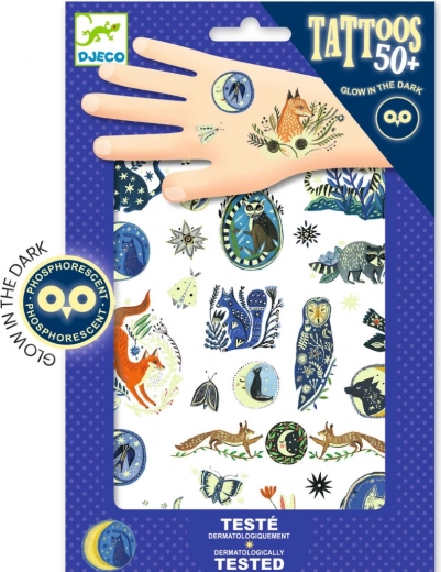 Da vida a tu look con los llamativos tatuajes de DJECO inspirados en la naturaleza nocturna. Esta gama de tatuajes temporales es ideal para niños y adultos que desean expresar su creatividad.