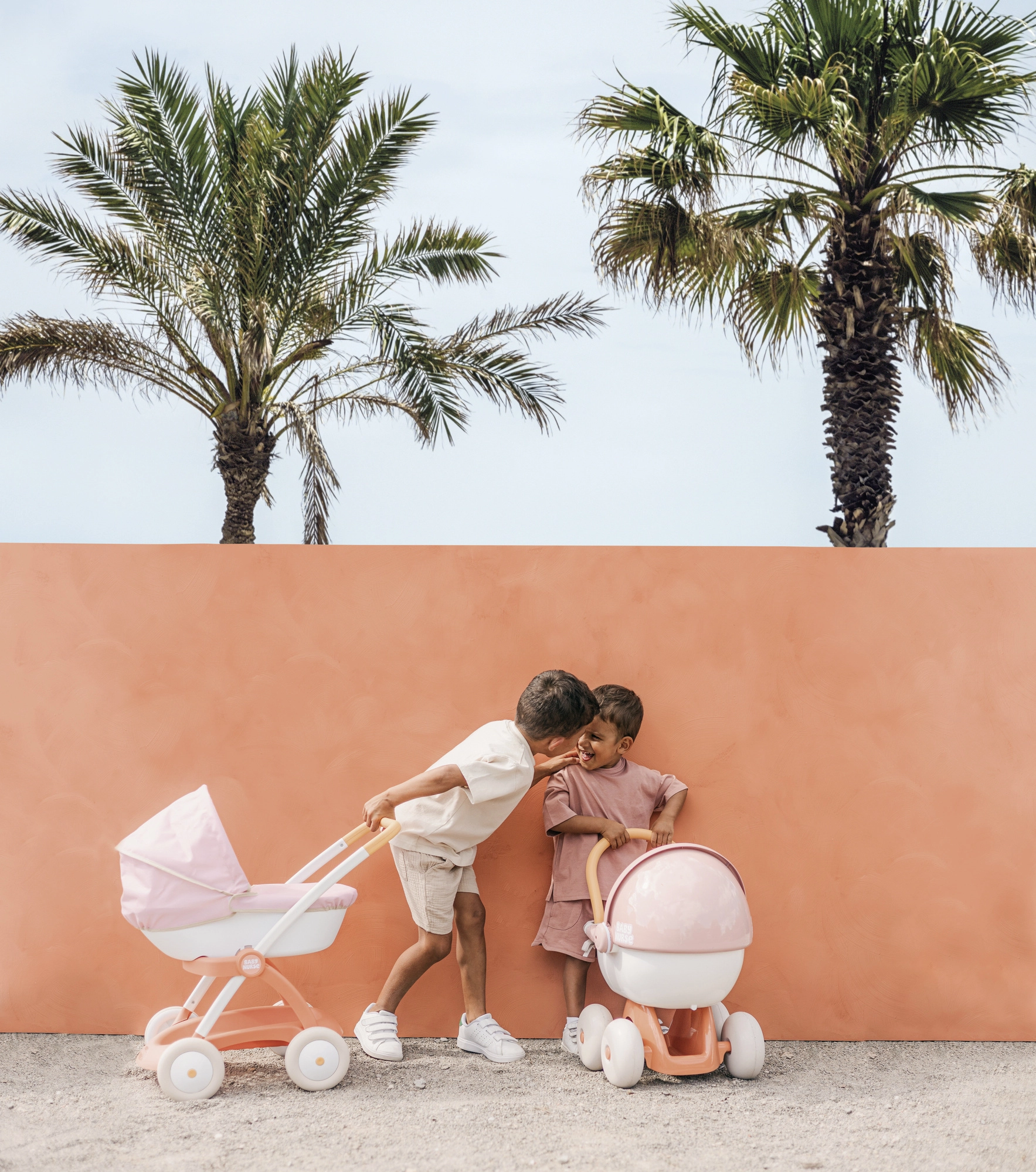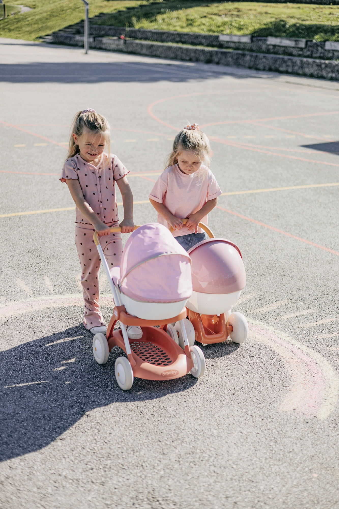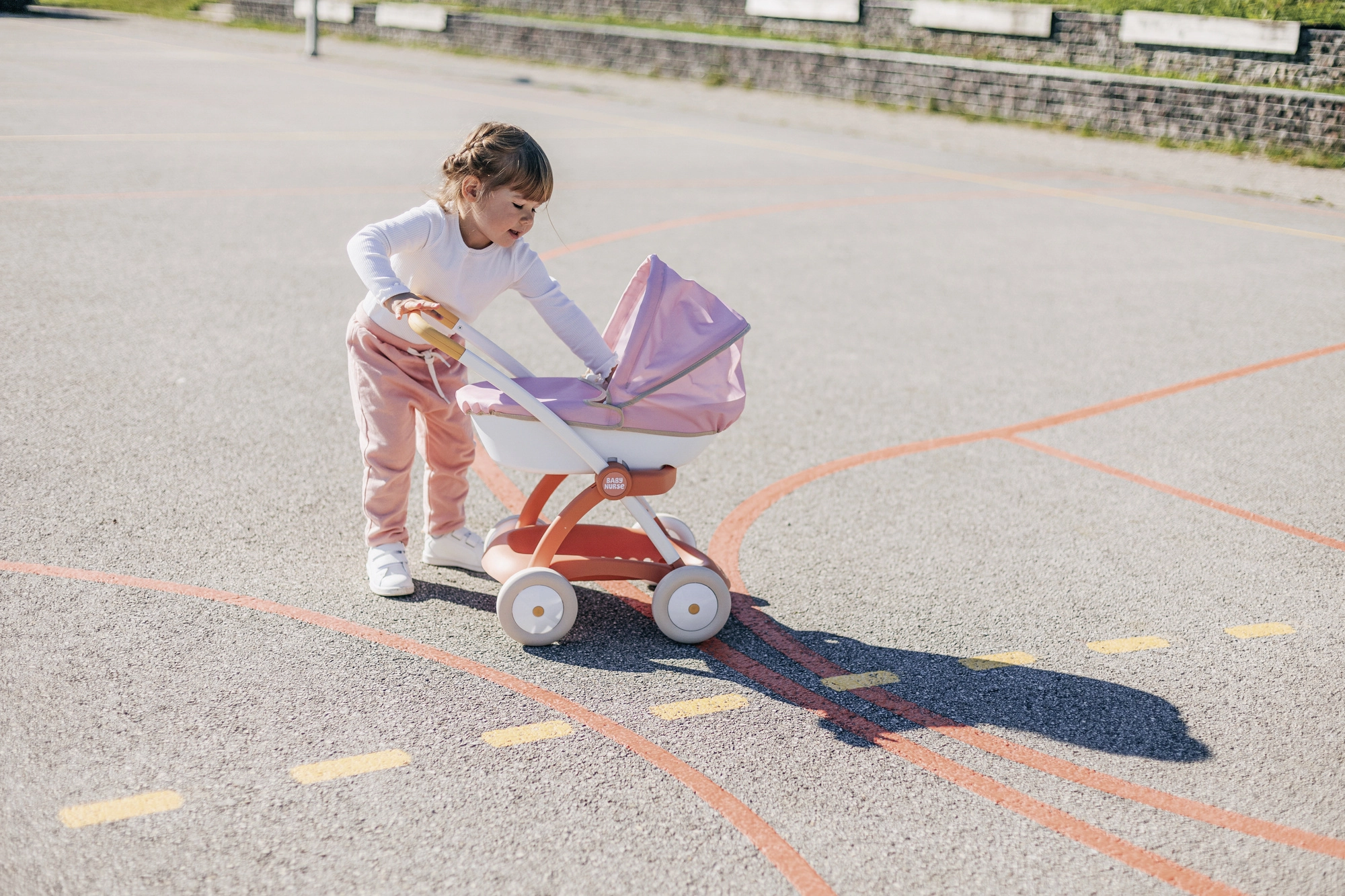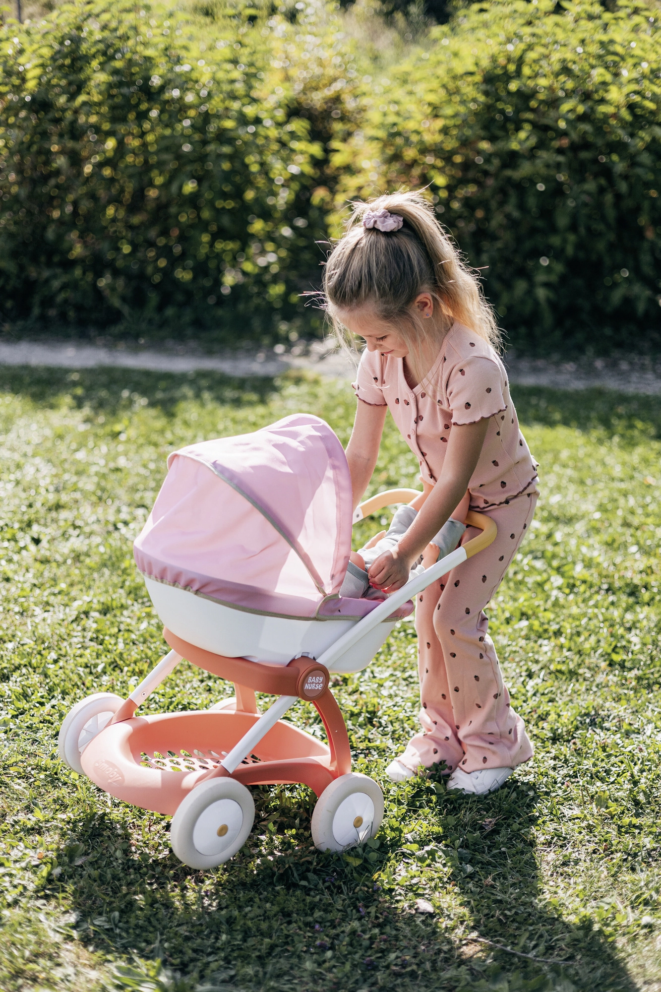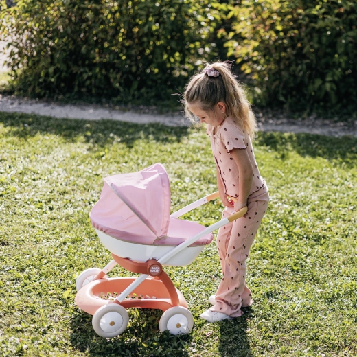 El cochecito para muñecas Smoby Baby Nurse en una combinación rosa, albaricoque y blanco es perfecto para los paseos diarios con la muñeca favorita. Gracias al marco metálico y a las ruedas silenciosas, el paseo es fluido y estable, mientras que la empuñadura ergonómica facilita la conducción incluso a los niños más pequeños.