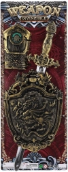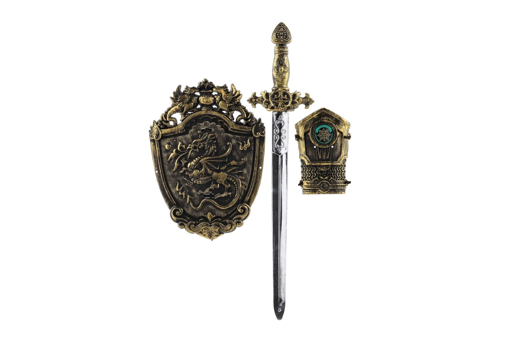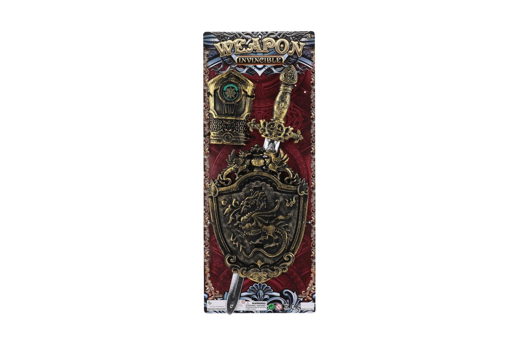 Conviértete en un valiente caballero con este increíble set de caballero que incluye una espada de plástico, un brazal protector y un escudo: todo lo que necesitas para un juego de aventuras en casa o en el jardín.