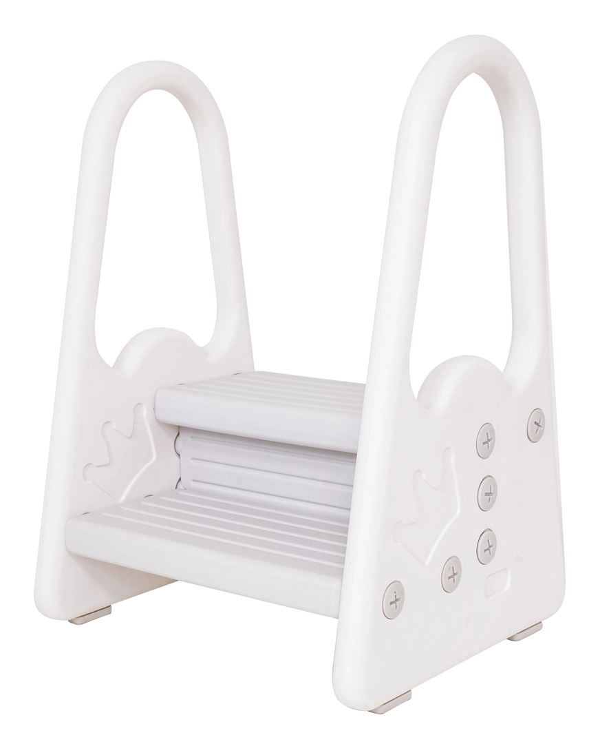 Fomenta la autonomía de tus hijos de forma segura. La escalera infantil de dos peldaños con pasamanos laterales altos ofrece confianza en cada paso, ya sea en el baño al lavarse las manos, en la cocina ayudando a cocinar o en el dormitorio infantil. La estructura de plástico resistente es ligera de transportar y fácil de mantener.
