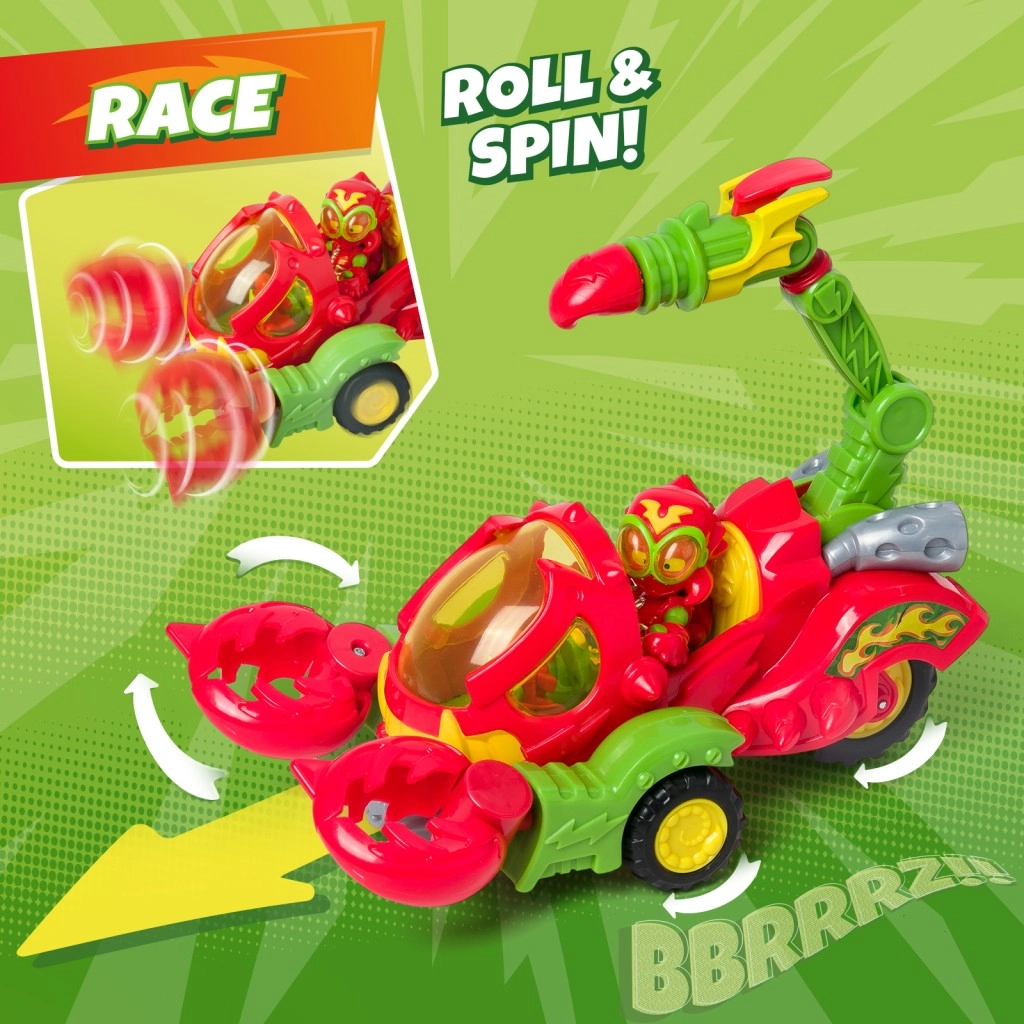 Desata todo el poder del escorpión con el Kid exclusivo y el SuperThing, que pueden ponerse al volante. El escorpión tiene pinzas que pueden atrapar a los rivales y giran al moverse. Además, puedes lanzar a los héroes con su poderoso aguijón.