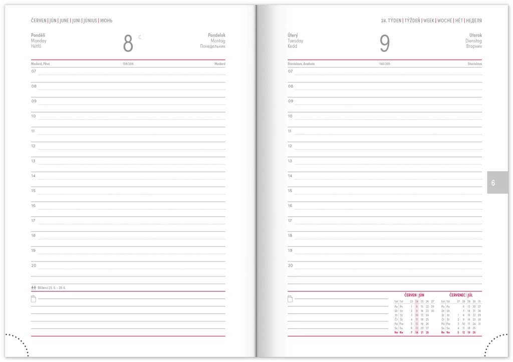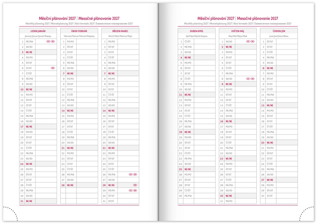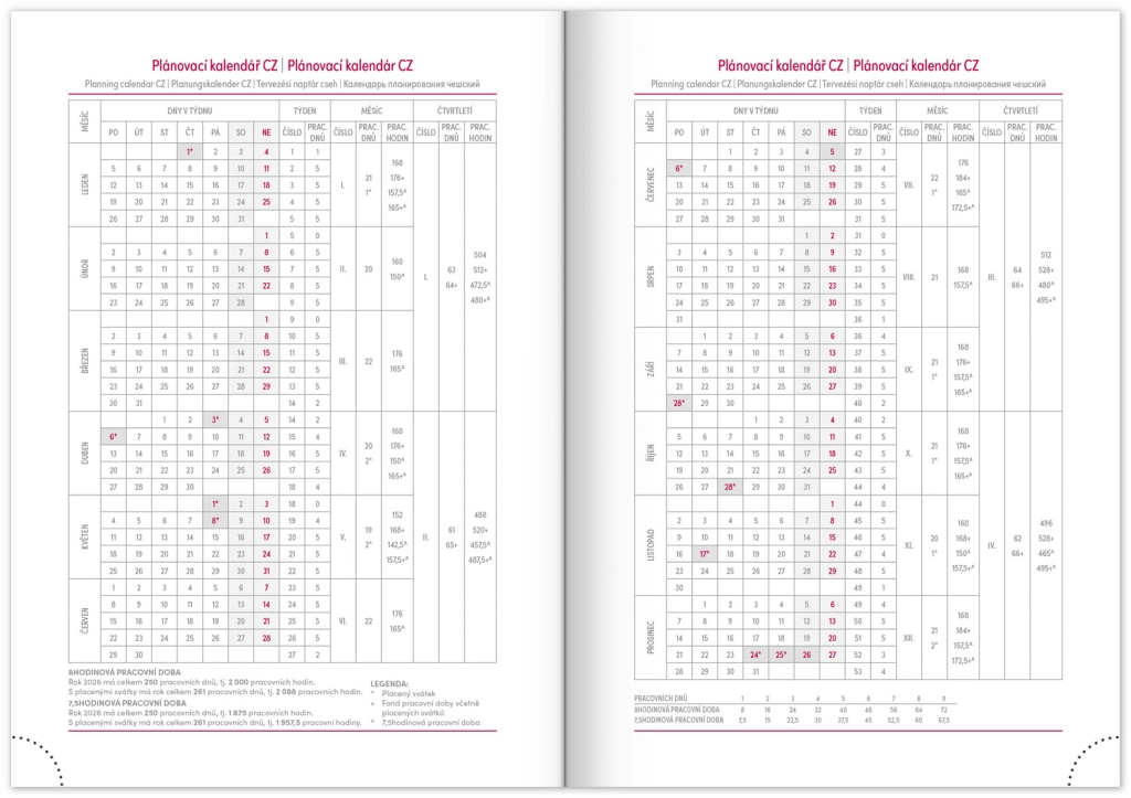 La elegante agenda diaria Balakon 2026 en un estiloso color burdeos es el compañero ideal para la planificación cotidiana. La agenda ofrece una superficie resistente y un calendario checo‑eslovaco complementado con otras variantes de idioma.