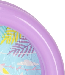 Fabricada en PVC de alta calidad y equipada con válvulas de seguridad, la piscina es ligera y fácil de transportar. Sus dos anillos inflables aportan estabilidad y los patrones de colores en el fondo añaden un ambiente alegre a cada actividad acuática.