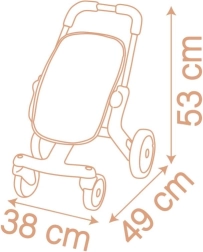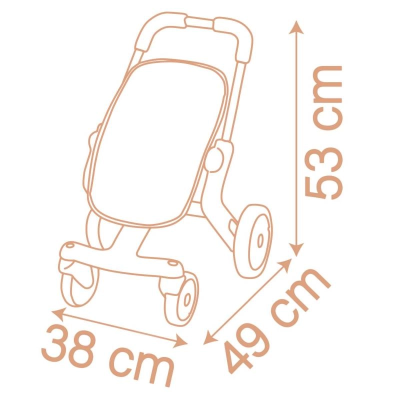 Este cochecito para muñecas ofrece una conducción y manipulación sencillas gracias a las ruedas delanteras que giran 360 grados. El ligero y resistente chasis de plástico garantiza una larga durabilidad y un manejo fácil. Su mantenimiento es muy sencillo: basta con humedecer una esponja con agua y limpiar el cochecito, perfecto si se ensucia durante el juego. El cochecito es adecuado para muñecas de hasta 42 cm, aunque las muñecas no están incluidas.