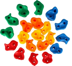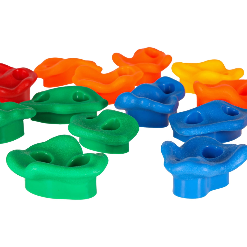 Los agarres de escalada de plástico están diseñados pensando en la seguridad y la durabilidad. Son resistentes a las inclemencias del tiempo, lo que los hace ideales también para uso en exteriores. Gracias a su versatilidad, puede montarlos en distintas superficies y así crear diversas rutas de escalada.