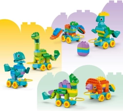 Este set no solo trata de construir, sino también de aprender jugando. Los ladrillos LEGO DUPLO están diseñados para manejarse con facilidad, lo que favorece el desarrollo de la paciencia y la concentración en los niños. El set también incluye una base con ruedas, gracias a la cual los dinosaurios se pueden convertir en modelos móviles, aportando aún más diversión a todos los pequeños amantes de los vehículos LEGO DUPLO.