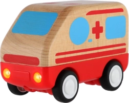 Elegante ambulancia de madera con motor de inercia, que ofrece una gran diversión sobre ruedas para los más pequeños. Basta con empujarla suavemente y la ambulancia saldrá rápidamente al rescate, algo que encanta a los niños.