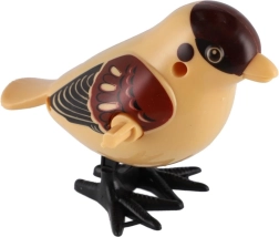 Adorable pajarito de cuerda de plástico que, al darle cuerda, salta por la mesa o el suelo y trae alegría a los niños que aman los animales y el movimiento.