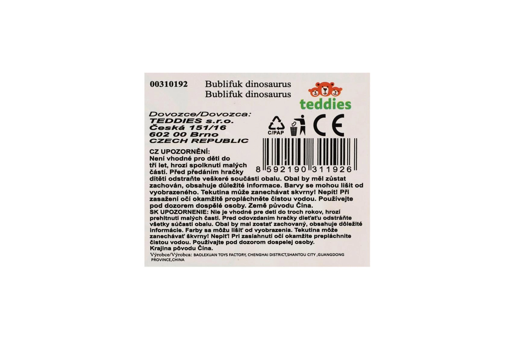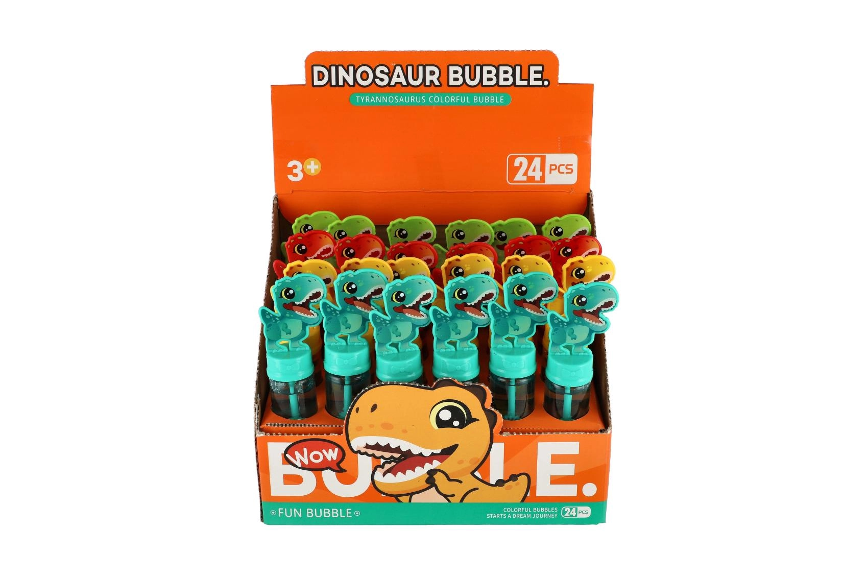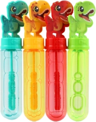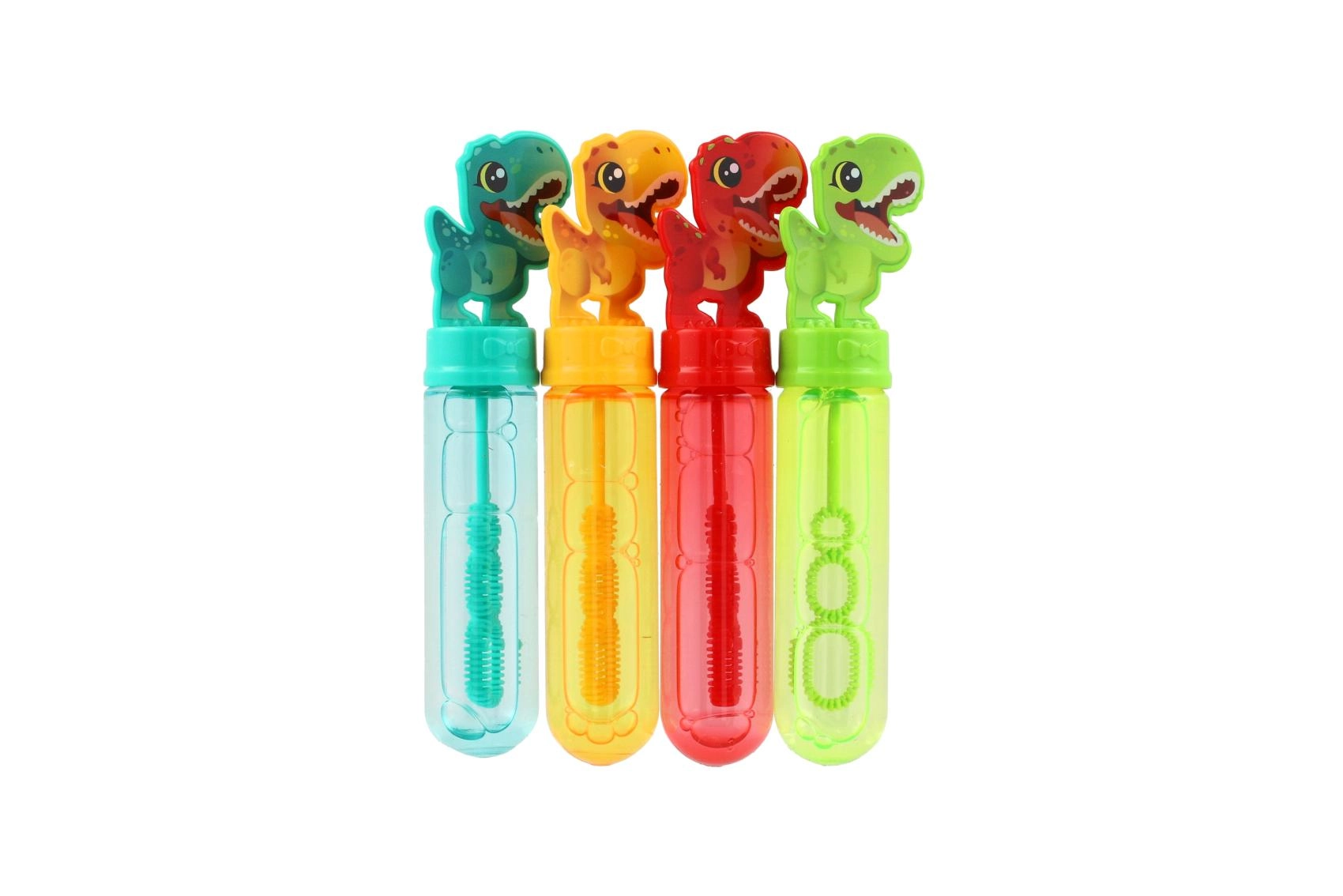 Este burbujero con motivo de dinosaurio hará las delicias de cualquier pequeño amante de los dinosaurios. Solo hay que desenroscar la tapa, sumergir en la solución y soplar: el mundo se llenará al instante de alegres burbujas.