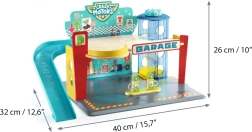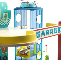El garaje de madera de Djeco es un juguete ilustrado que encaja perfectamente en el mundo Crazy Motors. Incluye un ascensor fácil de manejar, accesorios desmontables y ofrece divertidas opciones de aparcamiento.