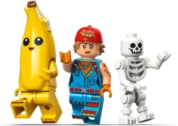 - Minifiguras de Peely, Sparkplug y un esqueleto, todas con accesorios en forma de armas.