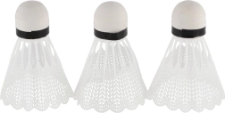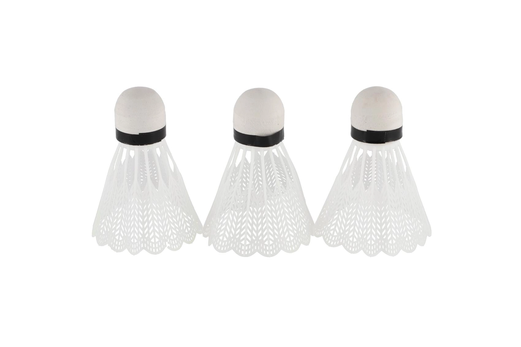 El set incluye tres volantes de bádminton blancos de plástico, diseñados para uso recreativo y de afición. Gracias a su construcción, obtendrás un rendimiento óptimo en cada golpe.