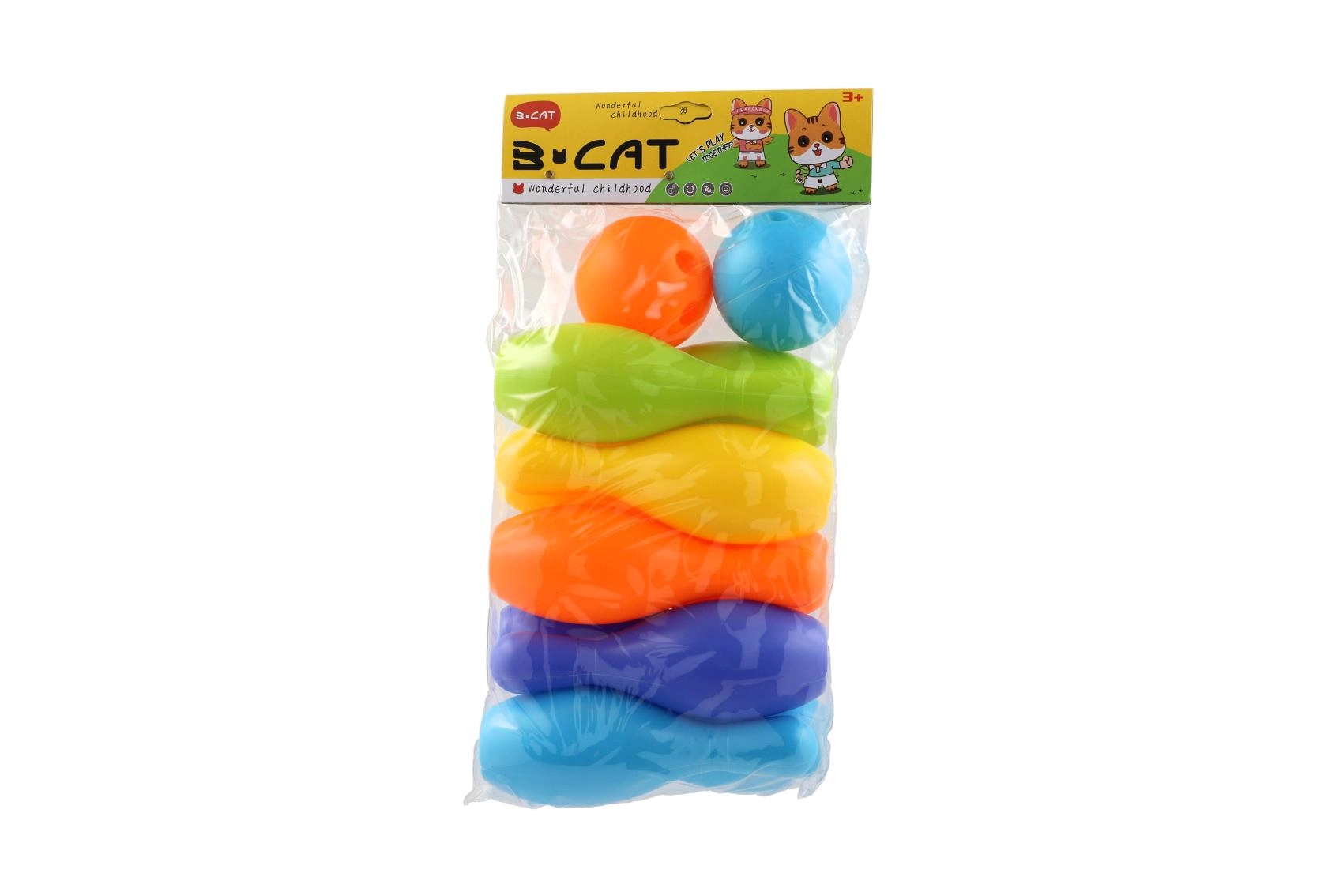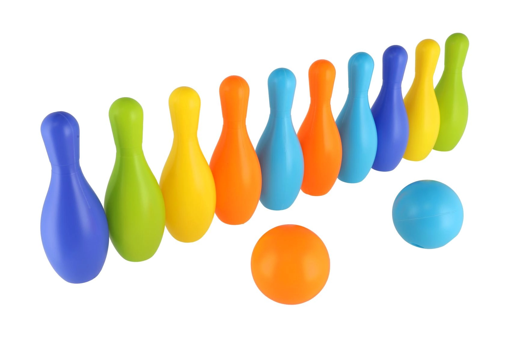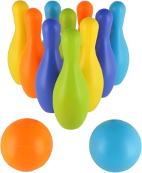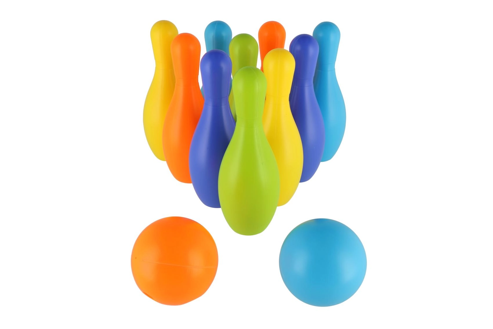 Los bolos y las pelotas vienen en colores vivos como naranja, verde, amarillo y azul, lo que los convierte en un juguete atractivo para los niños.