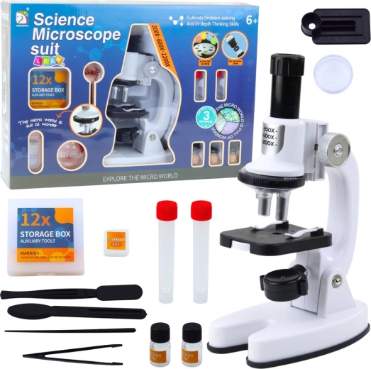 Gracias al aumento de tres niveles (200x, 600x, 1200x), los niños pueden observar células, fibras, insectos y muchas otras estructuras. La iluminación LED garantiza una imagen clara y nítida. El diseño ergonómico contribuye a un uso cómodo incluso durante exploraciones prolongadas.