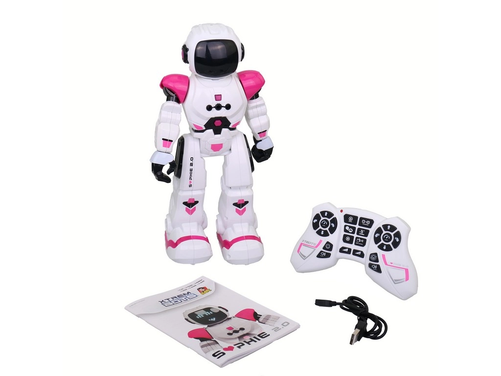 El control es posible no solo mediante el mando, sino también con el movimiento de la mano, lo que aumenta el nivel de diversión. Conectando el cable USB, cargarás a Sophie fácilmente y siempre estará lista para usar.