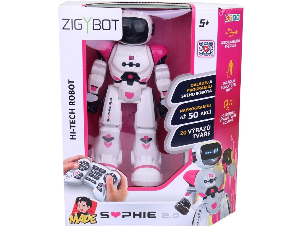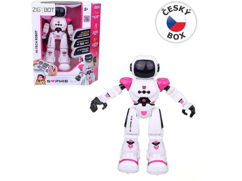 Sophie tiene 4 estados de ánimo básicos que se pueden cambiar con una simple pulsación de los botones en el mando a distancia IR. Programa a Sophie para diferentes movimientos y experimenta con baile y demostraciones. Los niños pueden ajustar la velocidad de movimiento y controlar el volumen de los sonidos robóticos, lo que garantiza un juego interactivo.