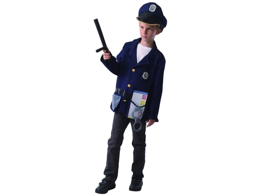 - Incluye chaqueta, gorra, tarjeta policial, porra y esposas.