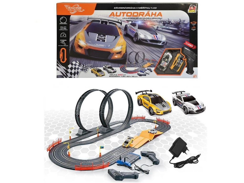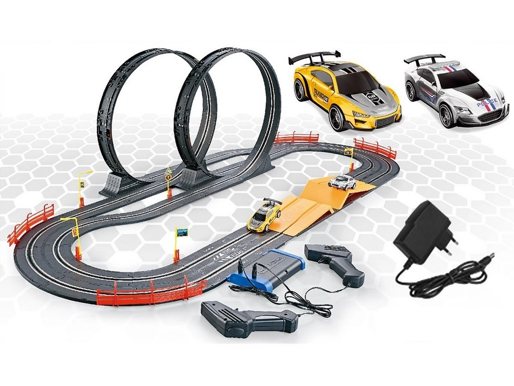 ¡Solo tienes que montar la pista, conectar el adaptador y empezar a correr! ¿Quién de vosotros será el piloto más rápido? Esta pista es una forma estupenda de pasar el tiempo con la familia o los amigos.