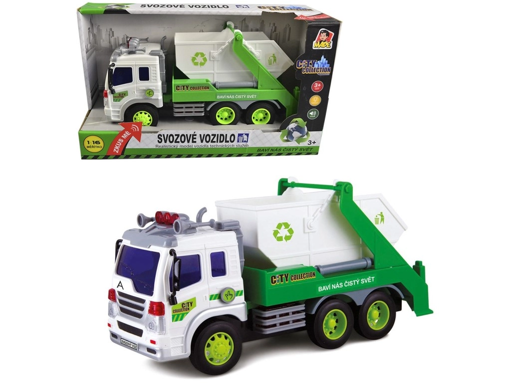 ¡Mantén el mundo limpio con la City Collection! Este realista camión de basura de MaDe está equipado con luces y sonidos que sin duda cautivarán a cualquier pequeño entusiasta ecológico.