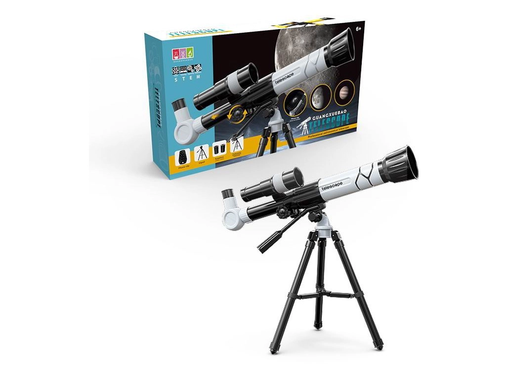 Les presentamos un telescopio infantil diseñado para pequeños entusiastas de la astronomía. Este modelo es fácil de usar y, gracias a los aumentos de 20x, 30x y 40x, los niños pueden disfrutar de la belleza del cielo nocturno. El telescopio está equipado con: