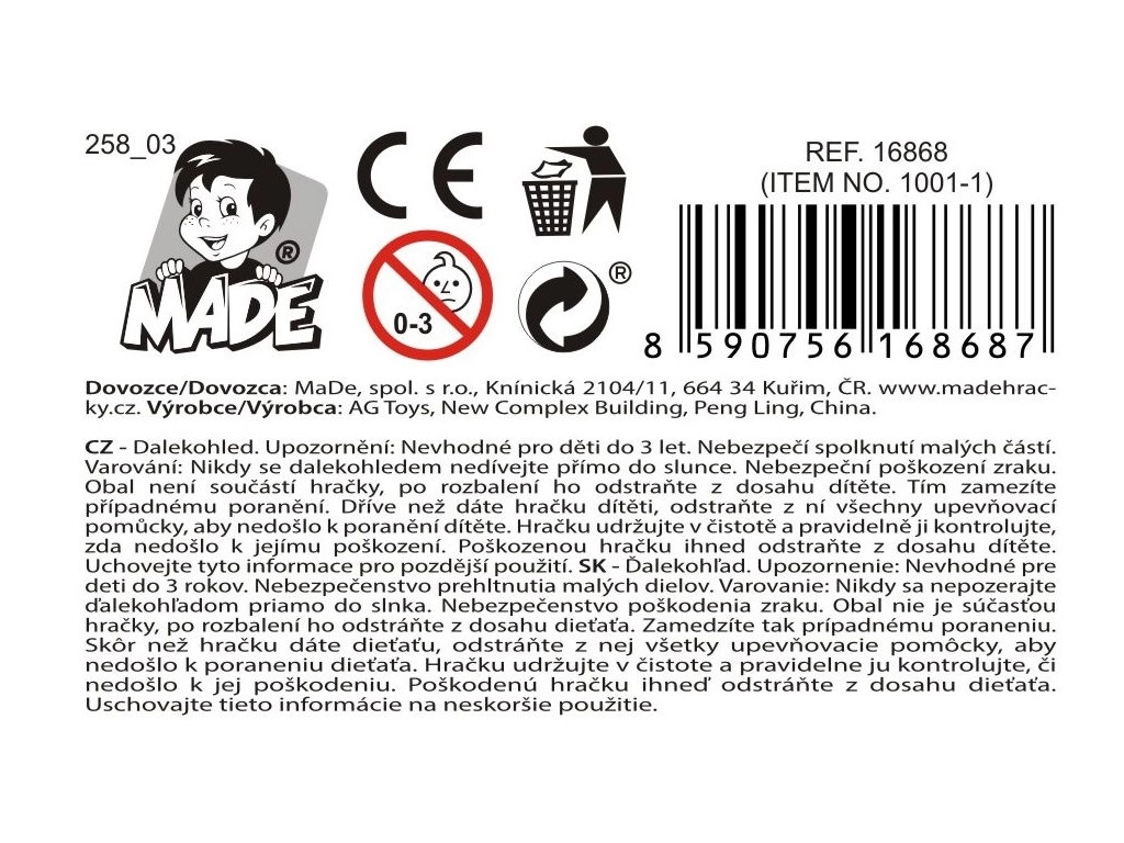 Las dimensiones del telescopio son 45 x 25 x 9 cm y está fabricado en plástico resistente. Apto para niños a partir de 6 años.