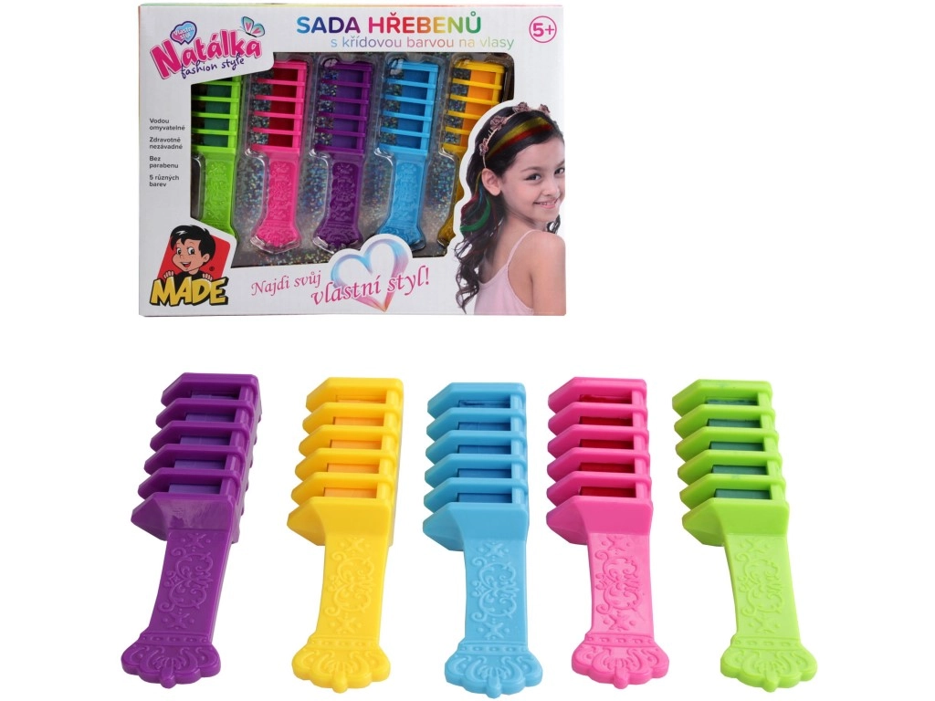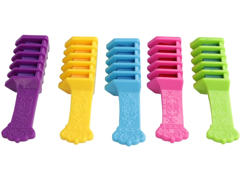 Descubre el mundo de los peinados coloridos con este fantástico set de peines. Cada uno de los cinco peines ofrece un color diferente, lo que permite crear estilos fantásticos y únicos. Los colores son totalmente seguros para niños a partir de cinco años y, gracias a su lavabilidad, su uso es muy sencillo. No contienen parabenos, así que puedes estar tranquilo respecto a la salud de tus hijos.
