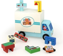 El juego lógico de madera Cárgalo correctamente de Vilac propone un desafío inteligente para niños a quienes les gusta resolver cómo colocar correctamente los muebles dentro del camión de mudanzas. Inspirado en los diseños ilustrados de Ingela P. Arrhenius, ayuda a desarrollar el pensamiento lógico, la orientación espacial y la motricidad fina. Los niños disponen de 19 piezas de mobiliario que deben encajar en el camión.