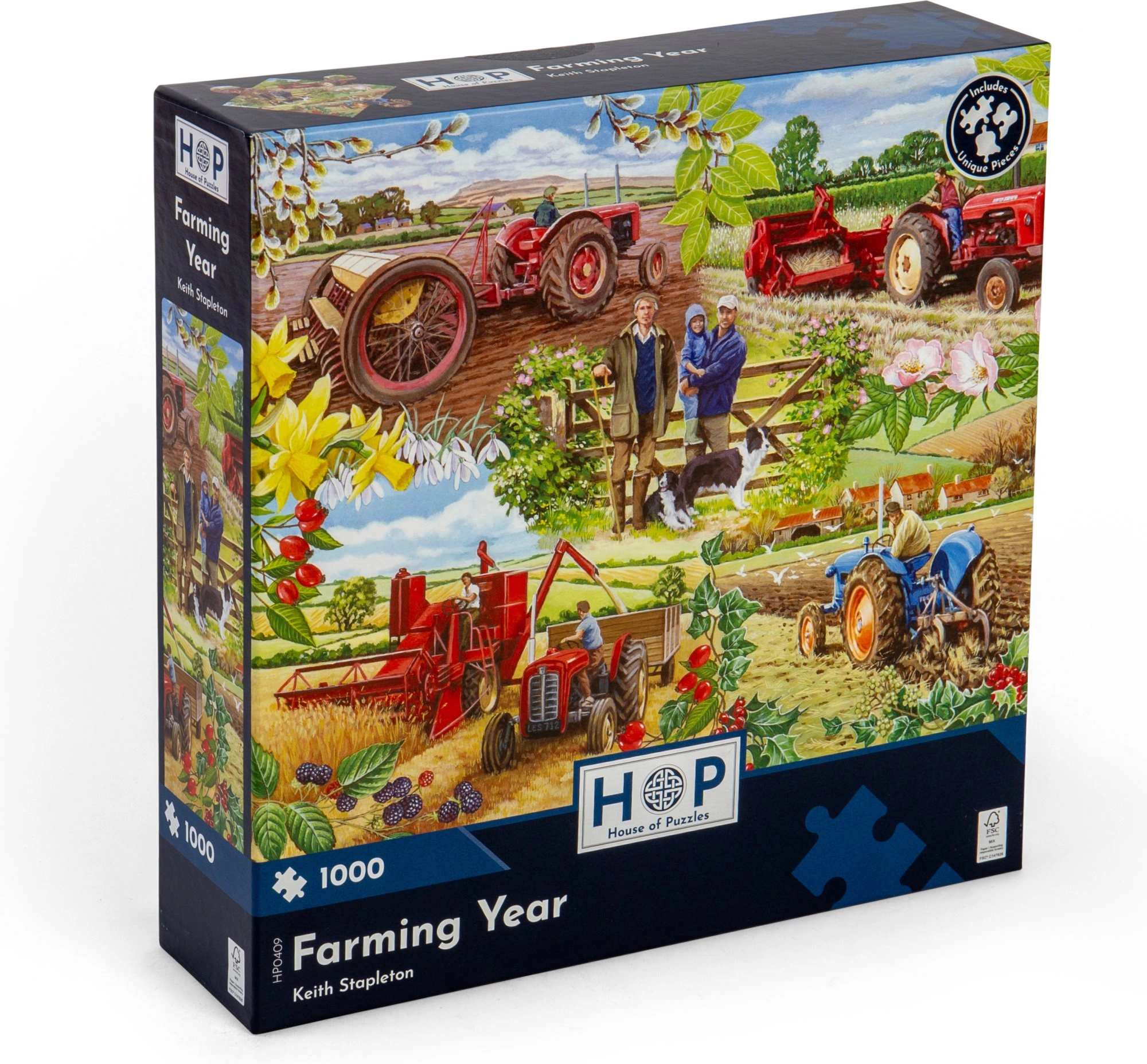 Puzzle El año del granjero de la marca House of Puzzles ofrece una experiencia irrepetible con sus piezas de forma única. Completa una hermosa imagen del año del granjero que te entretendrá durante horas.