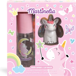 El spray corporal y el bálsamo labial Martinelia son perfectos para el cuidado diario de la piel y los labios de tu hijo. Este set doble está especialmente diseñado para niños a partir de 3 años y proporciona una hidratación y protección suaves que duran todo el día.